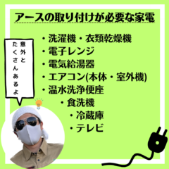 家電にアースがついていたら、必ず繋ぎましょう🔧