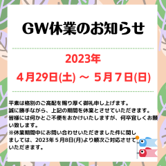 GW休業のお知らせ